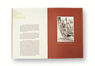 Die Begleitbroschüre zur Museumsführung Kaffee in Bremen macht das charakterstarke Getränk durch satte Kaffeefarben und das stets wiederkehrende Motiv der Kaffeeblüte auch auf dem Papier zu einem Genuss. Eine lebendige und abwechslungsreiche Gestaltung führt dabei durch die facettenreiche Geschichte des Kaffees. Auch im freien Verkauf erhältlich.