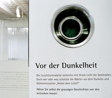 Auf 500 qm Fläche erlebt der Besucher den Leuchtturm als Ort der Extreme. Gleich zu Beginn eröffnet sich dem Besucher ein inszenatorisches Gesamtbild: 21 Kilometer Weich-PVC-Schlauch hängen in über 10.000 Stücken von der Decke und symbolisieren eine Nebellandschaft. Im wiederkehrenden Rhythmus durchscheint eine Leuchtturmoptik die Installation. Mit der optischen Orientierungshilfe navigiert der Besucher durch den Nebel und entdeckt dabei die drei Schwerpunkte der Ausstellung: die Verschiebung von Grenzen, das Leben am extremen Ort und den Wandel der Orientierung.